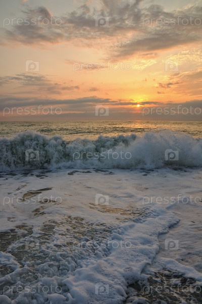 Пенный океан и розовый закат