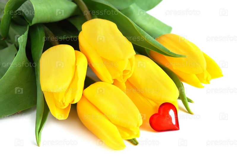 Букет желтых тюльпанов с сердечком