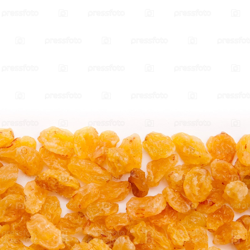 Желтый изюм на белом фоне