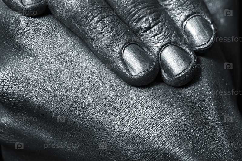 Мужские руки в серебряной краске