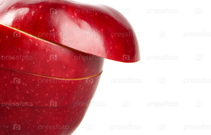 Красное яблоко, разрезанное на дольки. Изолировано на белом