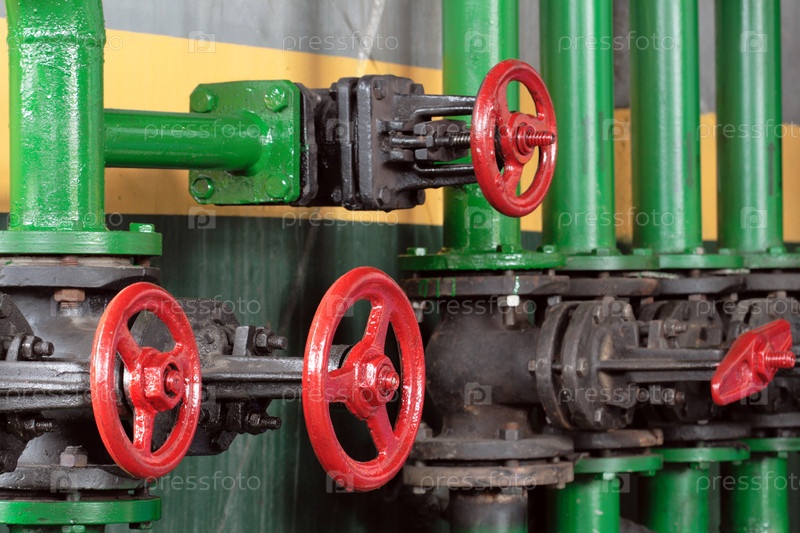 Зеленые трубы с красными клапанами