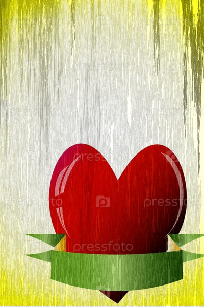 Красное сердце на желтом фоне