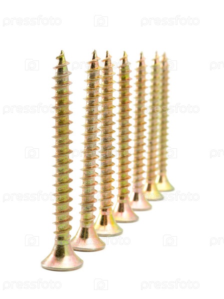 Некоторые медные винты на белом фоне