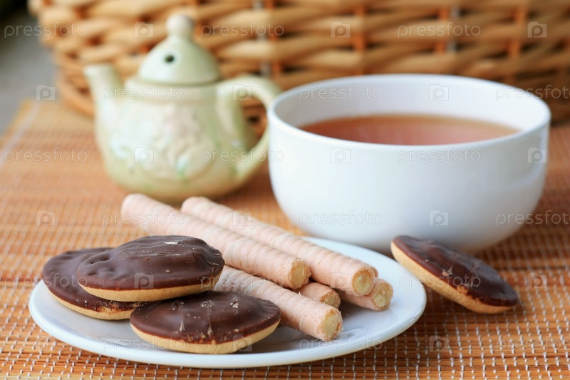 Печенье и чай в чашке