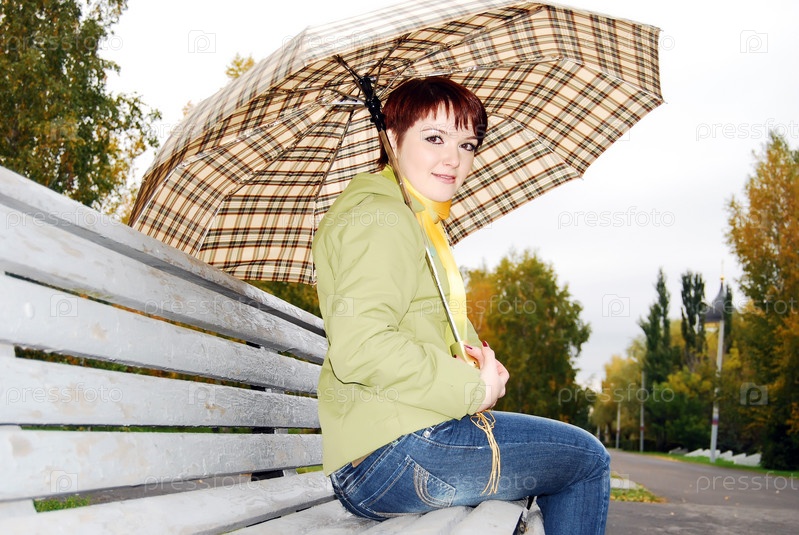 Девушка в осеннем парке под зонтом