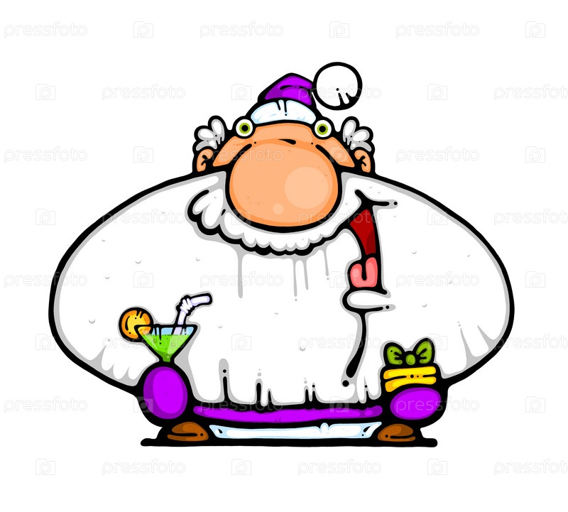 Радостный Дед Мороз с подарком и коктейлем