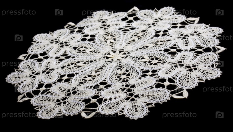 Салфетка белая с кружевами на черном фоне