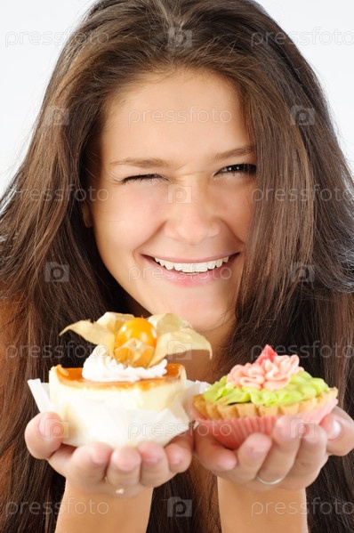 Молодая женщина предлагает десерт
