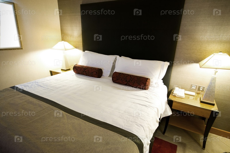 Двуспальная кровать в гостиничном номере
