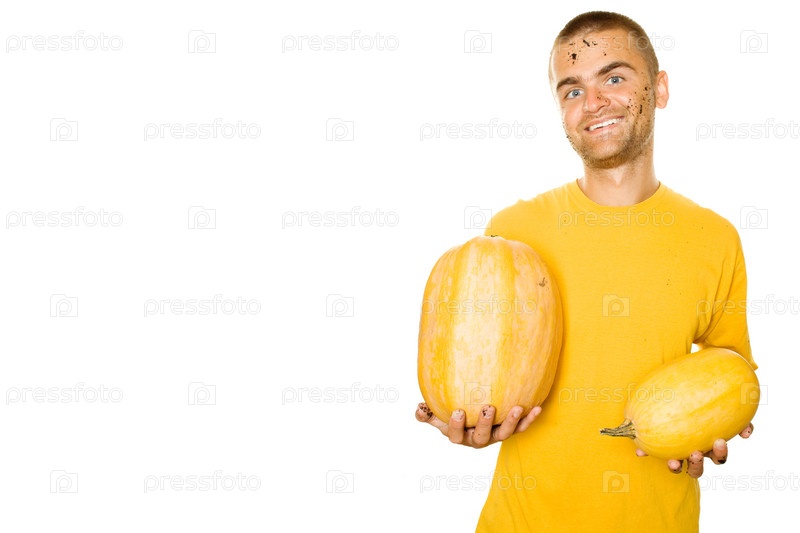 Молодой человек с тыквами