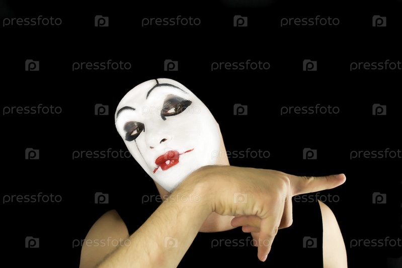 Лицо мима на черном фоне