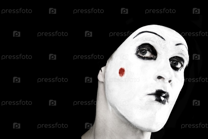 Лицо мима на черном фоне