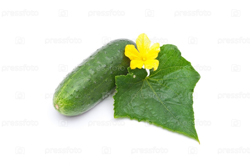 Свежий огурец с листком на белом фоне