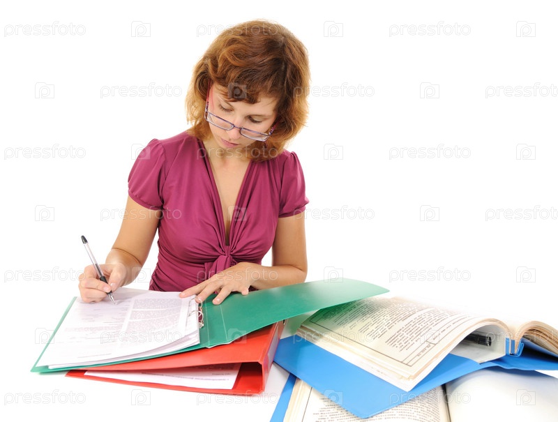 Молодая девушка, работающая над документами