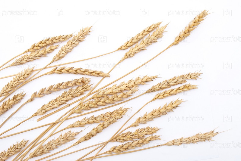 Пшеничные колоски на белом фоне крупным планом