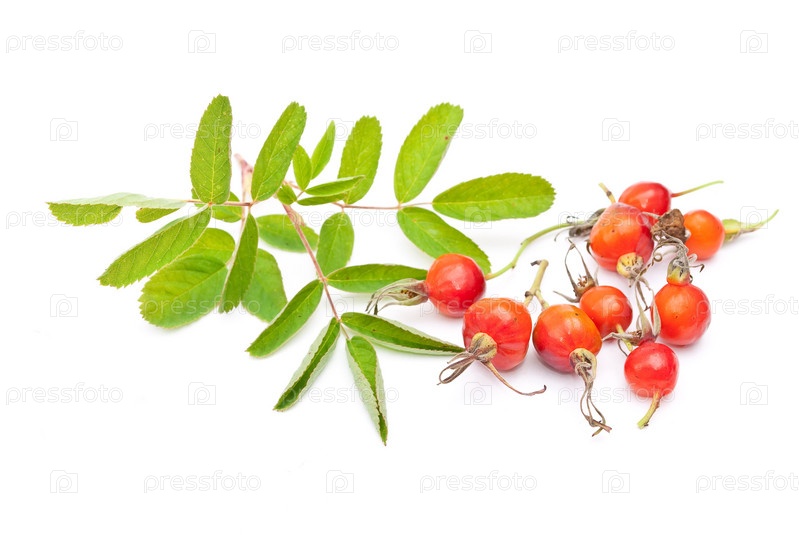 Спелые ягоды шиповника на белом фоне