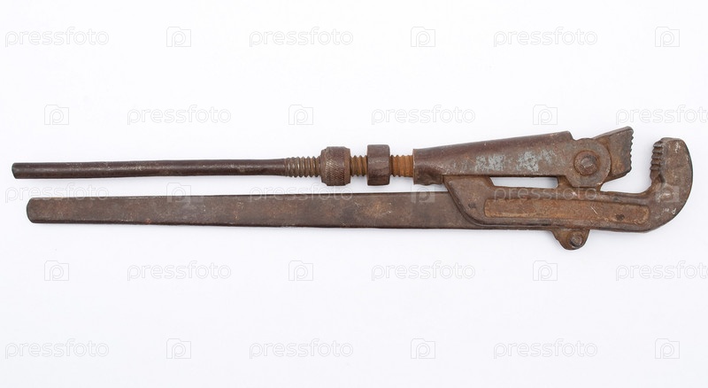 Старый ржавый разводной ключ на белом фоне