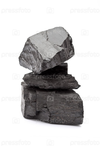 Уголь на белом фоне крупным планом