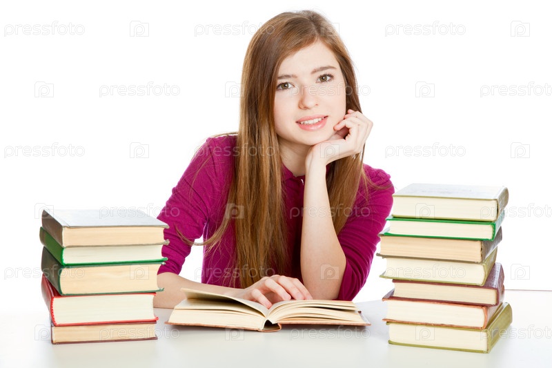 Девушка со стопкой книг