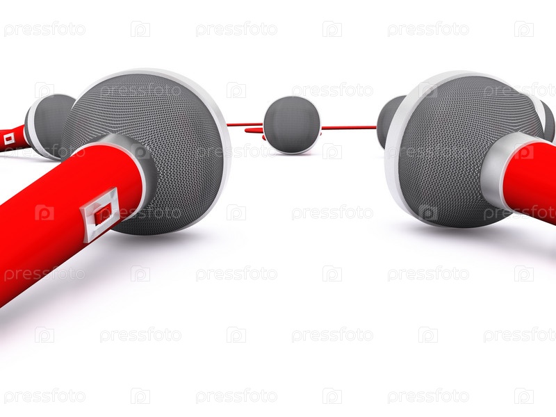 Красные микрофоны на белом плоскости. 3D