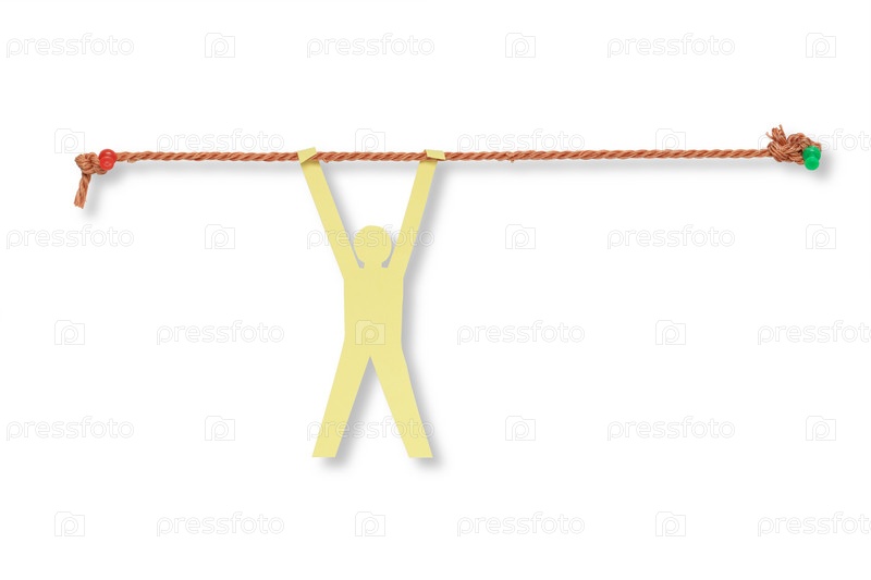 Фигура спортсмена из желтой бумаги на красной веревке