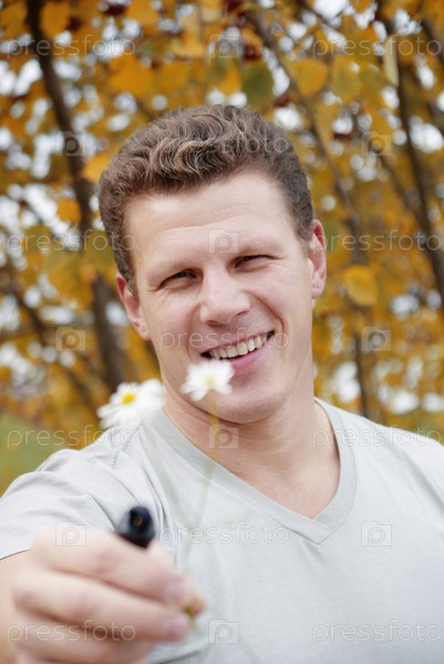 Мужчина протягивает ромашку