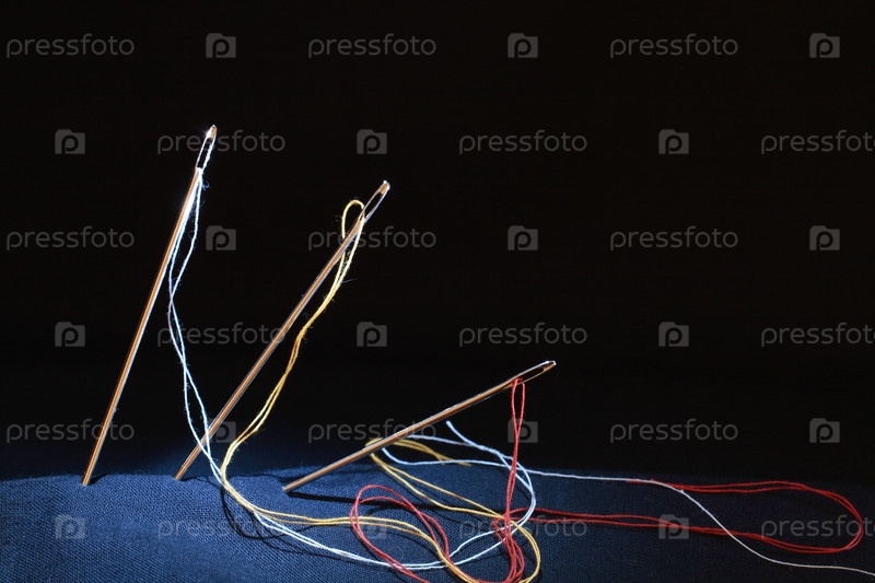 Три швейные иглы на черном фоне