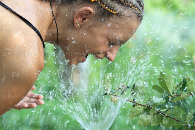 Лицо девушки под струей воды