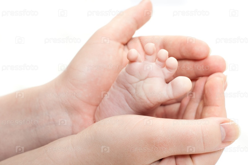 Маленькая ножка ребенка в руках родителя