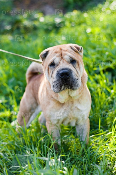 Шарпей на фоне травы