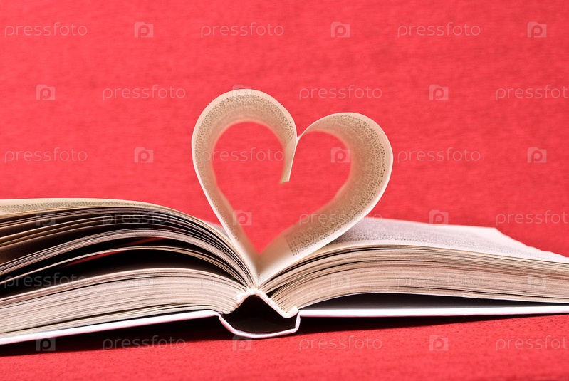 Сердце из книжных страниц на красном фоне