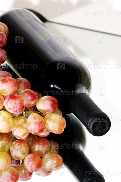 Бутылка вина и виноград