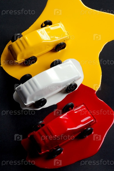 Три машинки, облитые краской