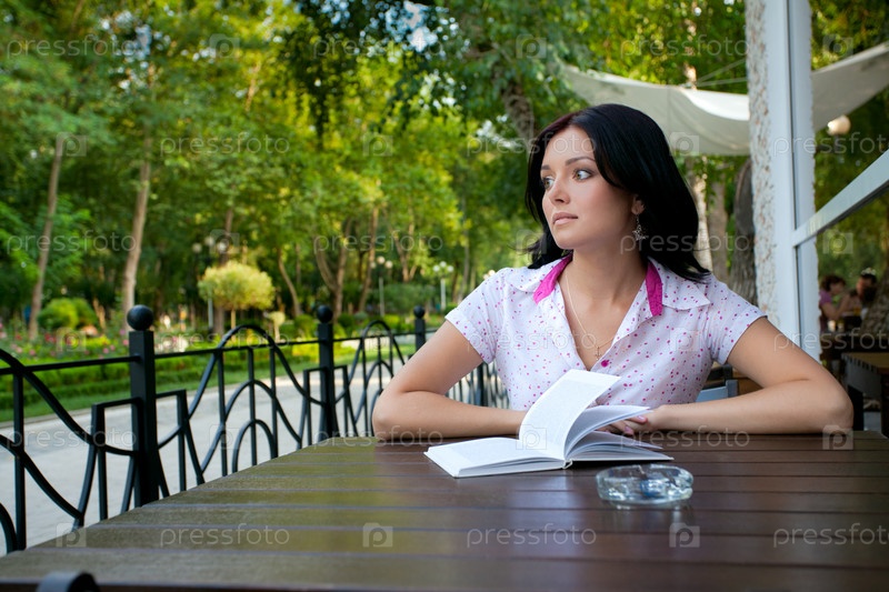 Молодая красивая девушка в кафе