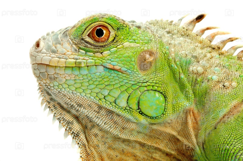 Игуана крупным планом на белом фоне