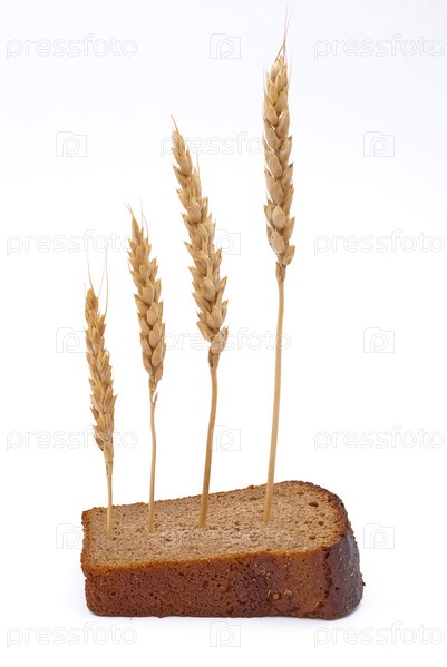Ломтик черного хлеба с колосьями пшеницы