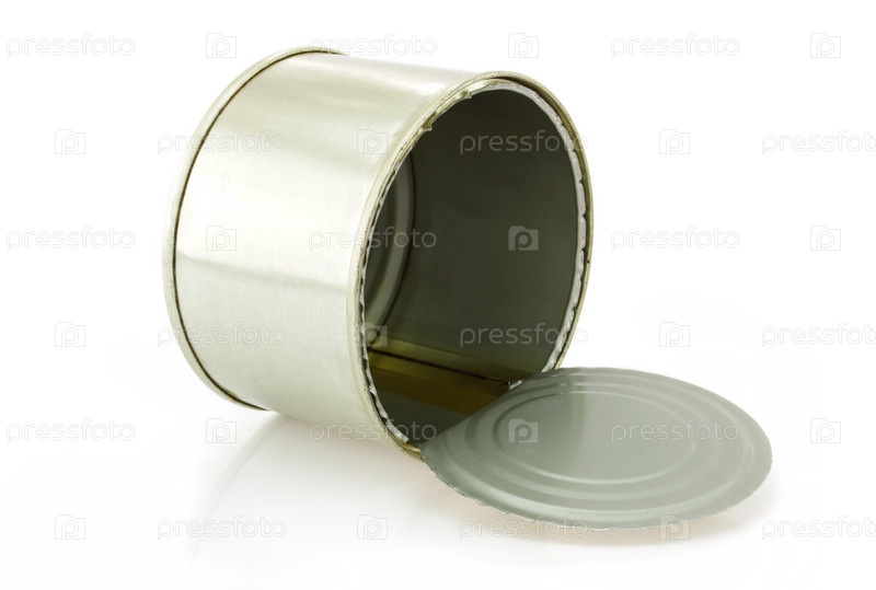 Пустая консервная банка на белом фоне