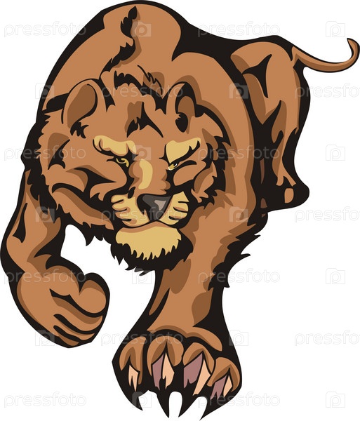 Иллюстрация тигра в прыжке с открытой пастью на белом фоне