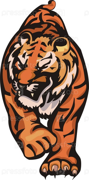 Иллюстрация тигра в прыжке с открытой пастью на белом фоне