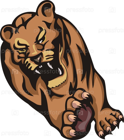 Иллюстрация тигра в прыжке с открытой пастью на белом фоне