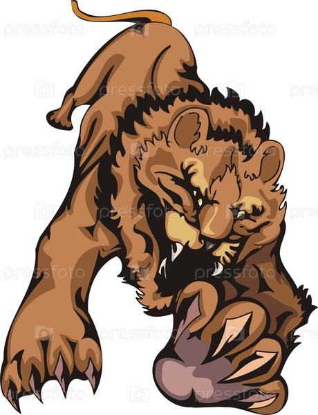Иллюстрация тигра в прыжке с открытой пастью на белом фоне