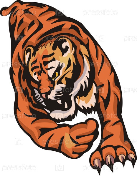 Прыгающий тигр. Большие кошки. Векторная иллюстрация