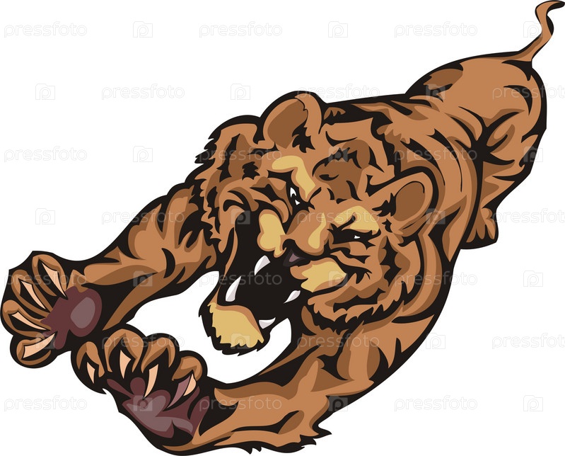 Иллюстрация тигра в прыжке с открытой пастью на белом фоне