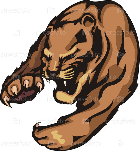 Иллюстрация тигра в прыжке с открытой пастью на белом фоне