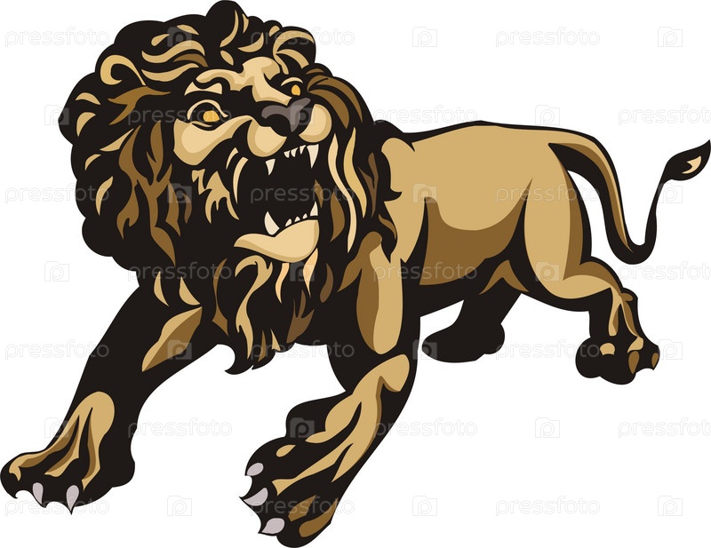 Иллюстрация агрессивного льва на белом фоне