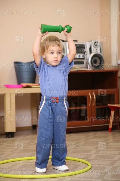 Мальчик делает упражнения с обручем