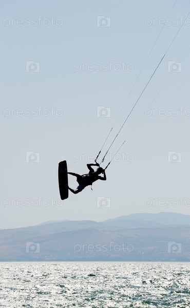 Скайсерфинг в лучах заходящего солнца на озере Кинерет
