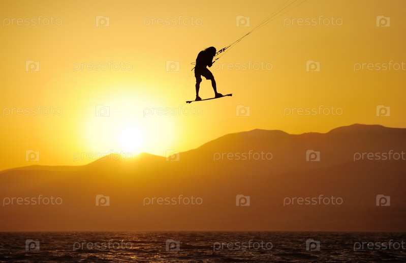 Скайсерфинг в лучах заходящего солнца на озере Кинерет