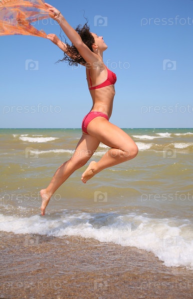 Красивая женщина в прыжке